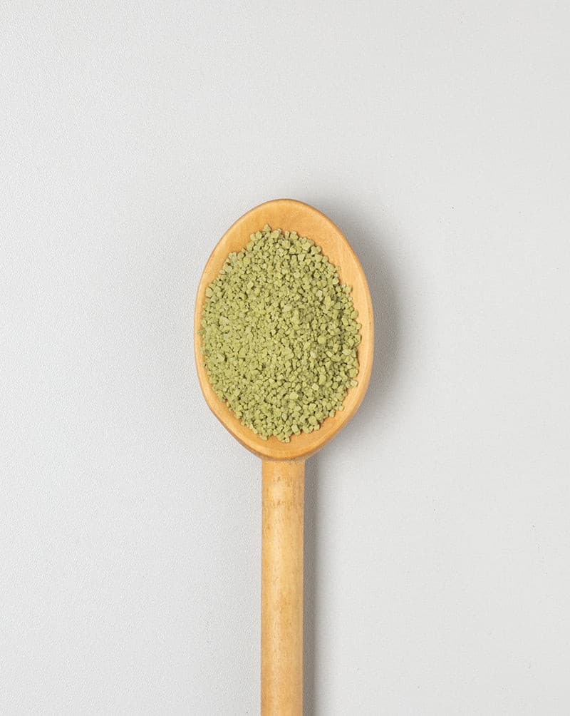 Hawaiisalz stammt aus dem Pazifik und hat eine Größe von 1 – 2mm. Die grüne Farbe bekommt das Salz von Bambusextrakt, der dem Salz zugefügt wird. Dieses Bambusextrakt gibt dem Salz seine leicht erdige Note.
